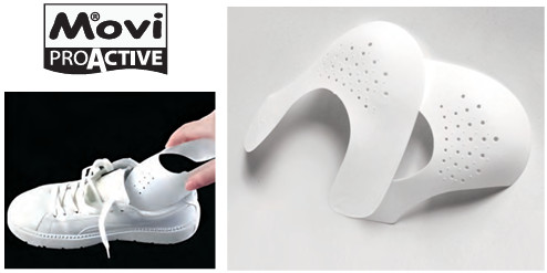 Helyezd a gyűrődésvédőt a cipő orr-részébe, majd vedd fel a cipőt. Szükség esetén a betét méretre vágható a pontos illeszkedés érdekében.